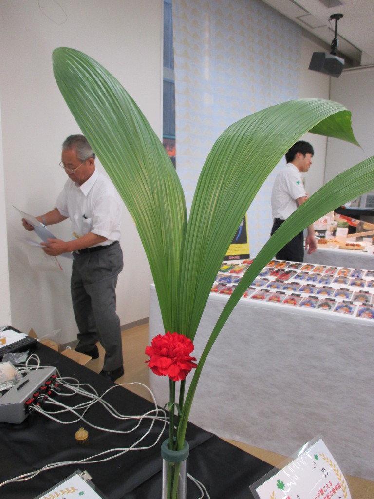 これは、剣山を通じて、花と葉っぱがスピーカーの代わりになっている。